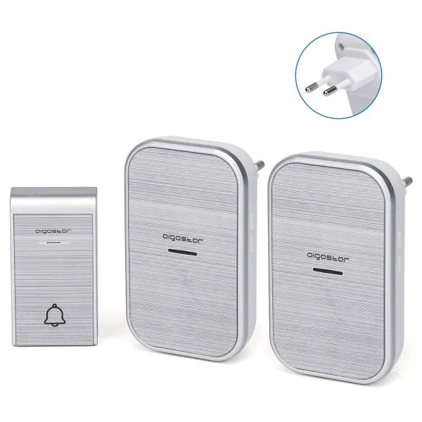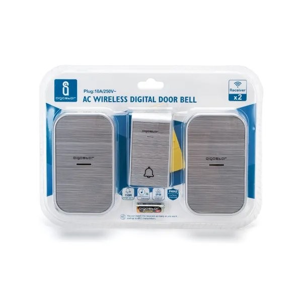 CAMPANELLO SENZA FILI- PULSANTE (pila mn21) - 2 RICEVITORI INTERNI AC230/250V #1195B