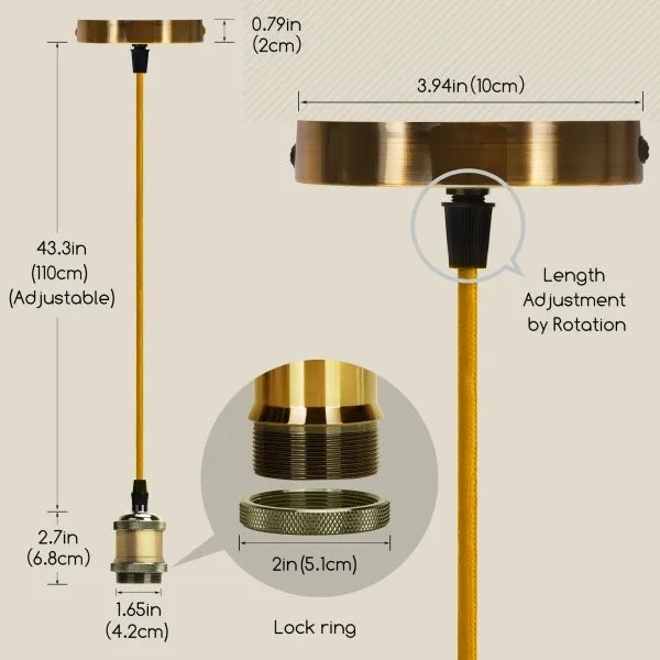 PORTALAMPADA E27 PASSAFILO CAVO SOSPENSIONE 1M ORO AC230V "Aigo" #X84G